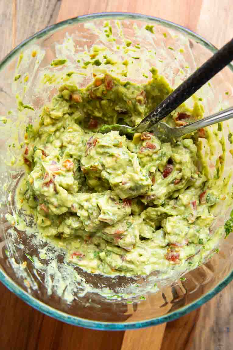 - Prepare the guacamole – Next, mix all the guacamole ingredients in a bowl.